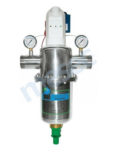 BravoMAX A je opremljen z avtomatskim sistemom čiščenja filtrirnega vložka in izpiranjem nečistoč. Čiščenje se aktivira glede na razliko tlakov ali časovno.